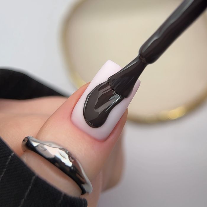 Hybrid polish colour 511 Stone Veil from the Midnight Sway collection from Slowianka Nail Trends is a deep, dark shade of grey with a subtly glossy finish. This mysterious stone colour exudes tranquillity and sophistication, blending perfectly with minimalist and elegant styles. Stone Veil is a shade that will be perfect for both everyday and evening looks, adding a modern and intriguing aesthetic to your nails.