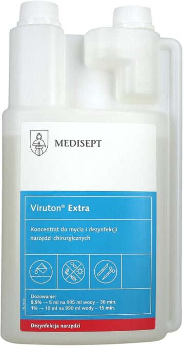 VIRUTON FORTE is a ready-to-use product designed for simultaneous washing and disinfection of hairdressing and cosmetic instruments by immersion. The drug has a virucidal, bactericidal, tuberculocidal and yeast effect. VIRUTON FORTE is intended for disinfection of combs, brushes, rollers, hairdressing scissors and manicure tools that do not violate the integrity of tissues. It is designed for all tools made of steel and metal alloys. It can be used by immersion in a disinfectant bath or ultrasonic cleaner.